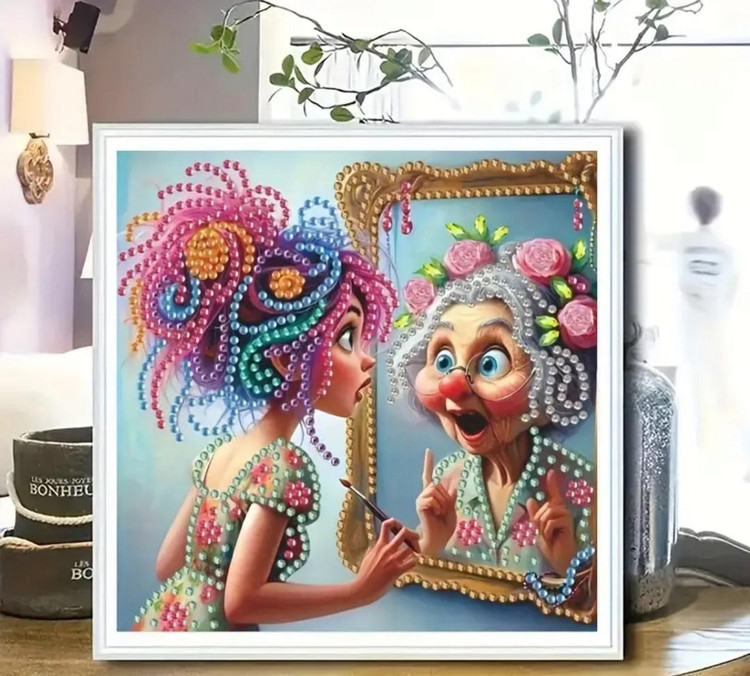 نقاشی جواهری طرح دختر در آینه سایز 20*20