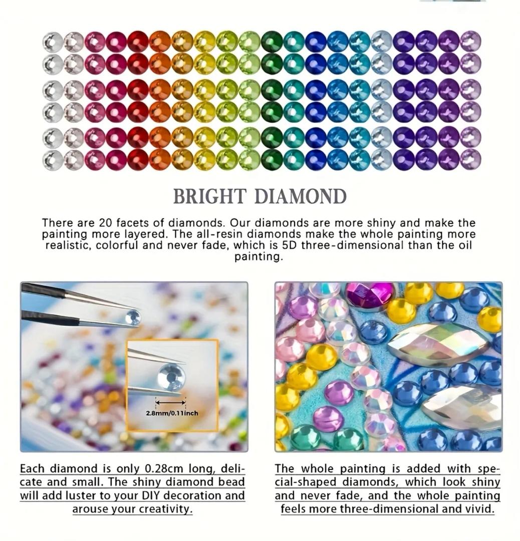 نقاشی الماسی (Diamond Painting) یک هنر دستی جذاب و آرامشبخش است که با قرار دادن نگینهای براق و رنگی روی بوم چسبدار، یک تصویر زیبا و درخشان خلق میشود. هر نگین مانند یک الماس کوچک نور را منعکس میکند و در نهایت اثری چشمنواز و خاص به وجود میآورد.