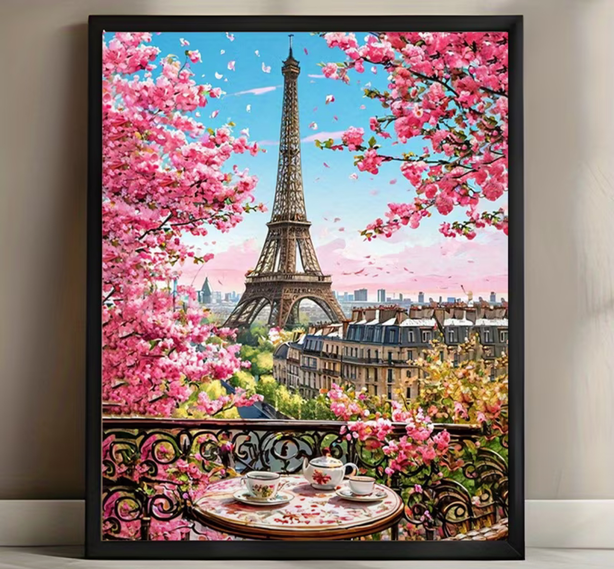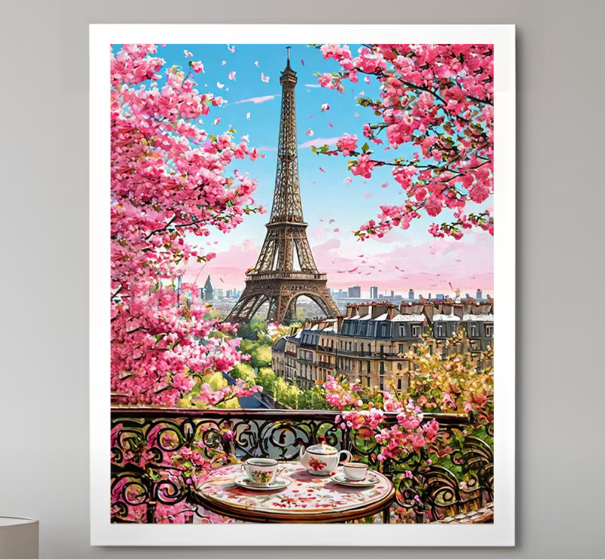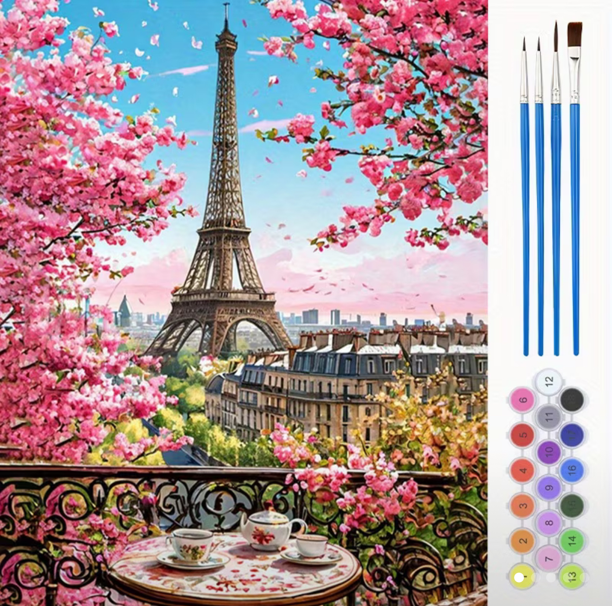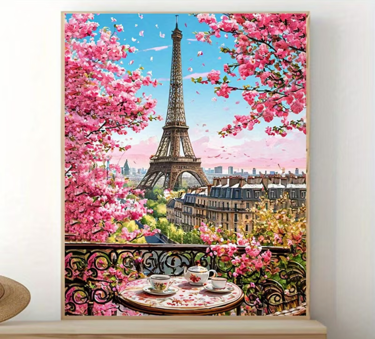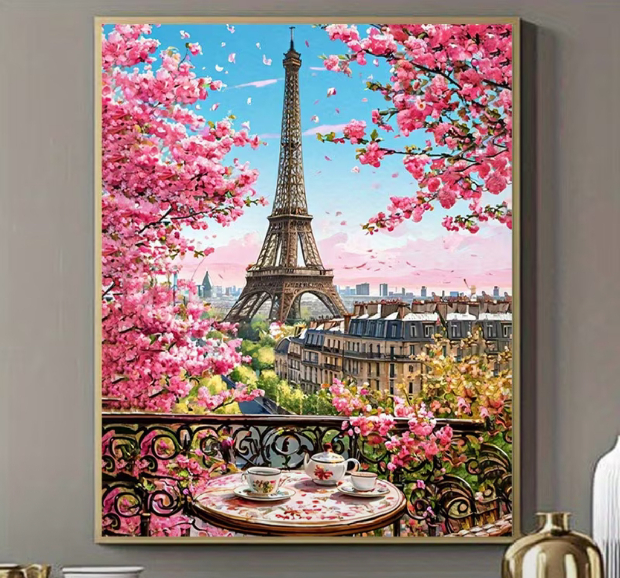 نقاشی با اعداد طرح بهار پاریس سایز 50*40