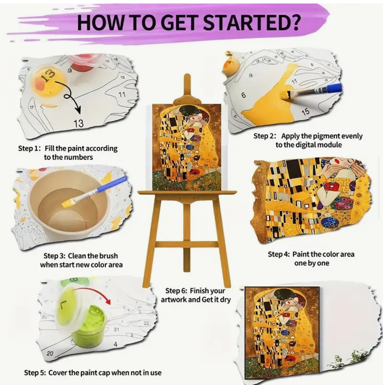 نقاشی با اعداد طرح بوسه طلایی سایز 50*40