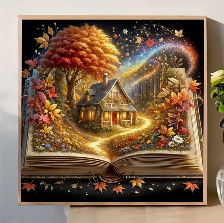 نقاشی الماسی طرح کتاب کلبه ای سایز 30*30