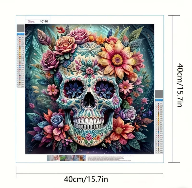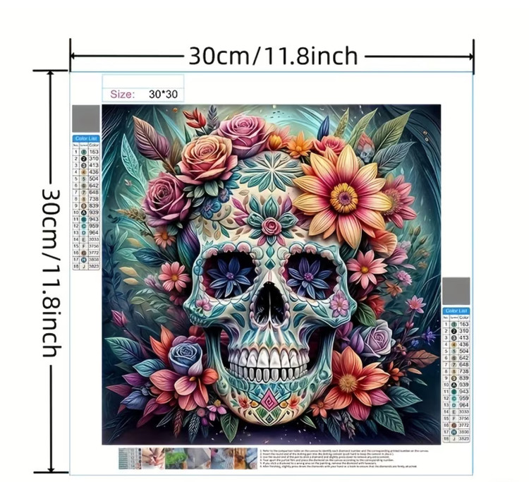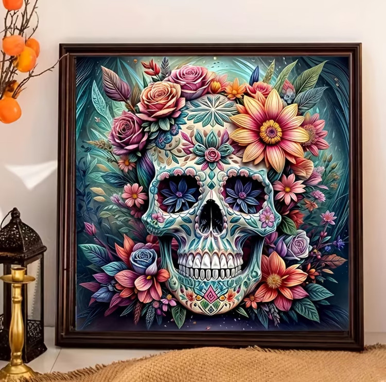 نقاشی الماسی طرح اسکلت گل گلی سایز 30*30