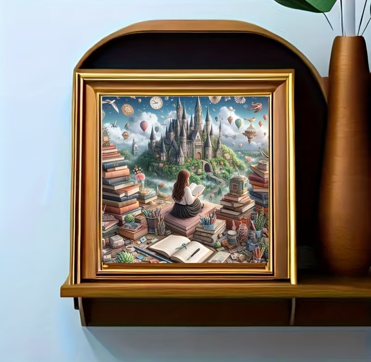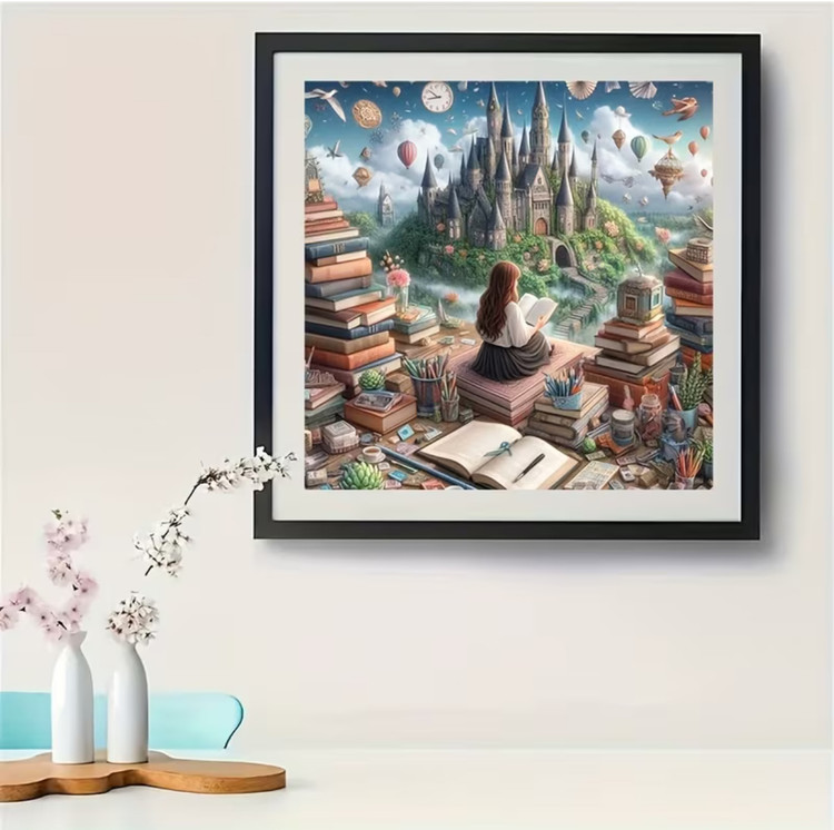 نقاشی الماسی طرح دختر کتابخوان سایز 40*40