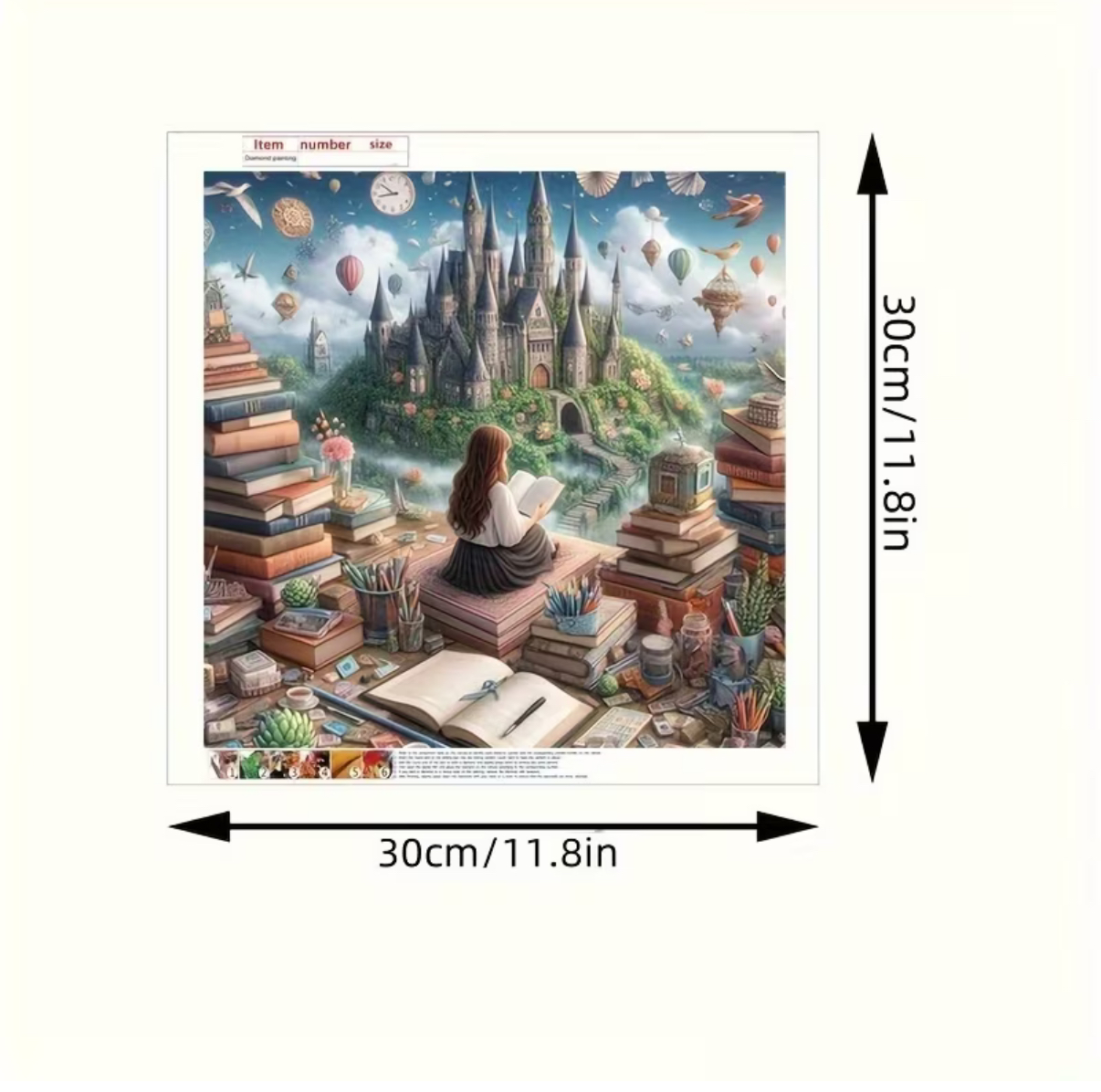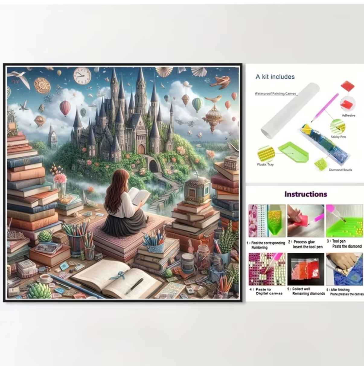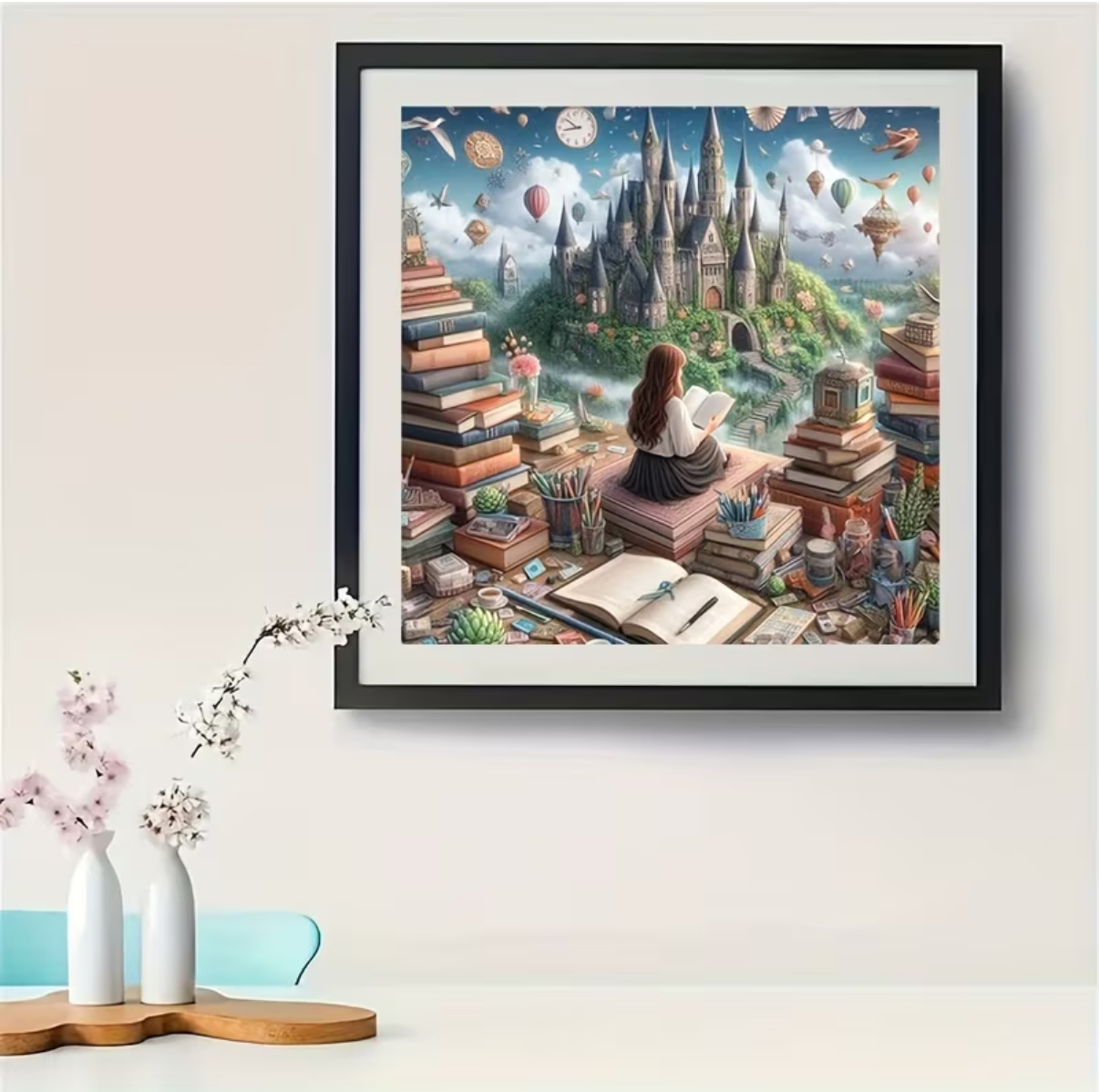 نقاشی الماسی طرح دختر کتابخوان سایز 40*40
