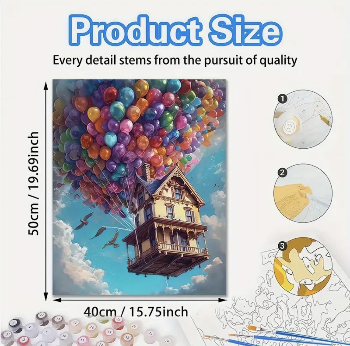 شامل:: طرح چاپشده با شمارهبندی دقیق، رنگهای اکریلیک باکیفیت، 3عدد قلم مو، گیره و یراق نصب روی دیوار