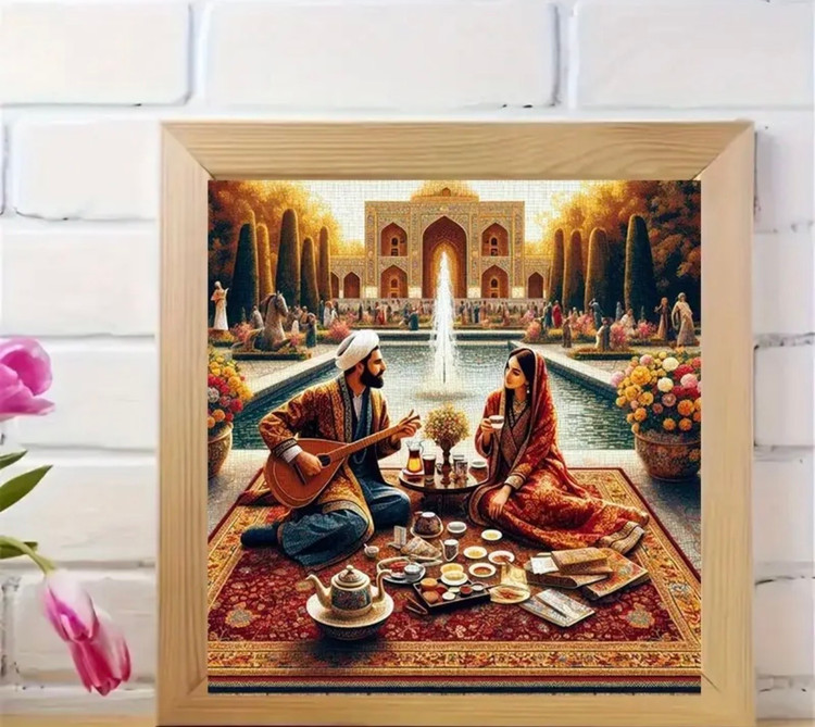 شامل:: طرح چاپشده با شمارهبندی دقیق، رنگهای اکریلیک باکیفیت، 3عدد قلم مو، گیره و یراق نصب روی دیوار