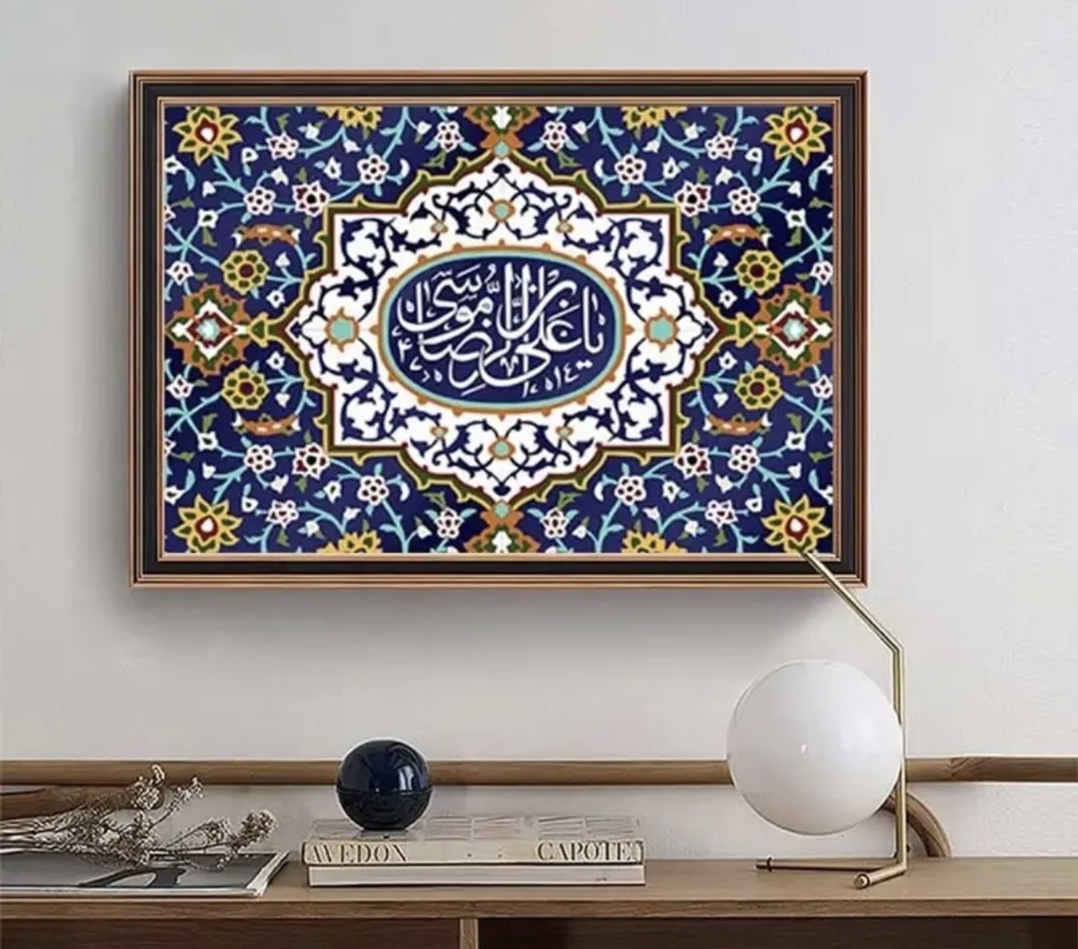 این نقاشی الماسیه الهامگرفته از هنر اصیل اسلامی–ایرانی است که با نقشهای هندسی و گلوبوتههای سنتی و خطاطی چشمنواز، جلوهای خاص و آرامشبخش به فضای شما میبخشد. درخشش الماسها در کنار رنگهای عمیق و هماهنگ، این اثر را به یک انتخاب لوکس و ماندگار تبدیل کرده است.