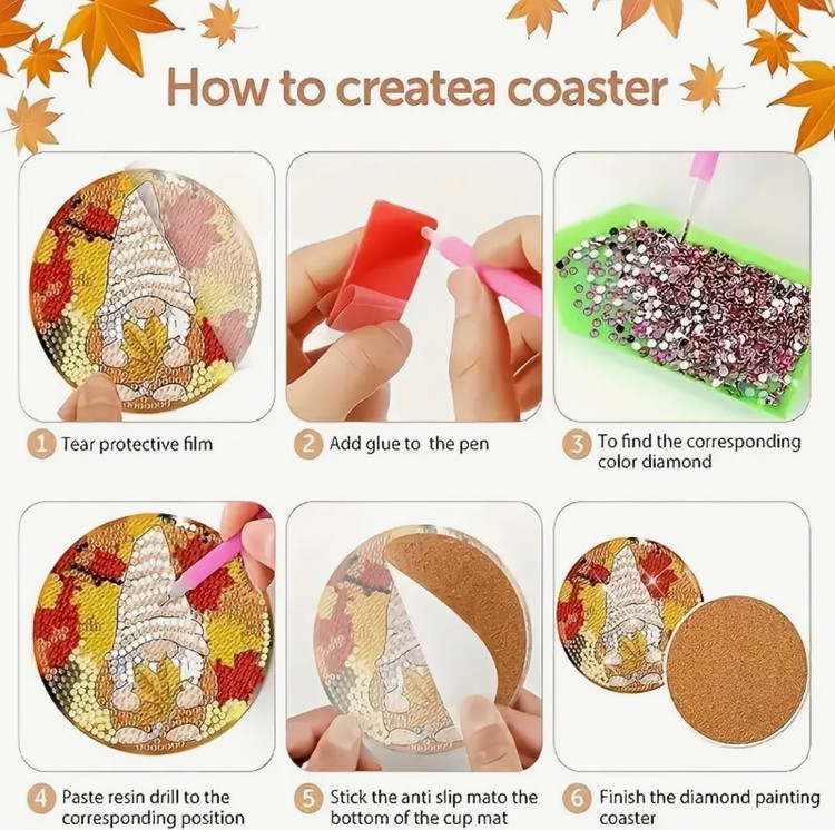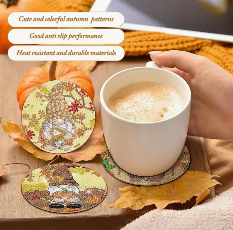 این مجموعه زیرلیوانی الماسی با الهام از حالوهوای پاییزی طراحی شده و شخصیتهای بامزهی کوتولههای پاییزی (گنومها) را در میان برگهای رنگارنگ، کدو تنبل و المانهای گرم فصل پاییز به تصویر میکشد. ترکیب رنگهای نارنجی، زرد، قهوهای و قرمز حس گرما، صمیمیت و آرامش پاییز را بهخوبی منتقل میکند.