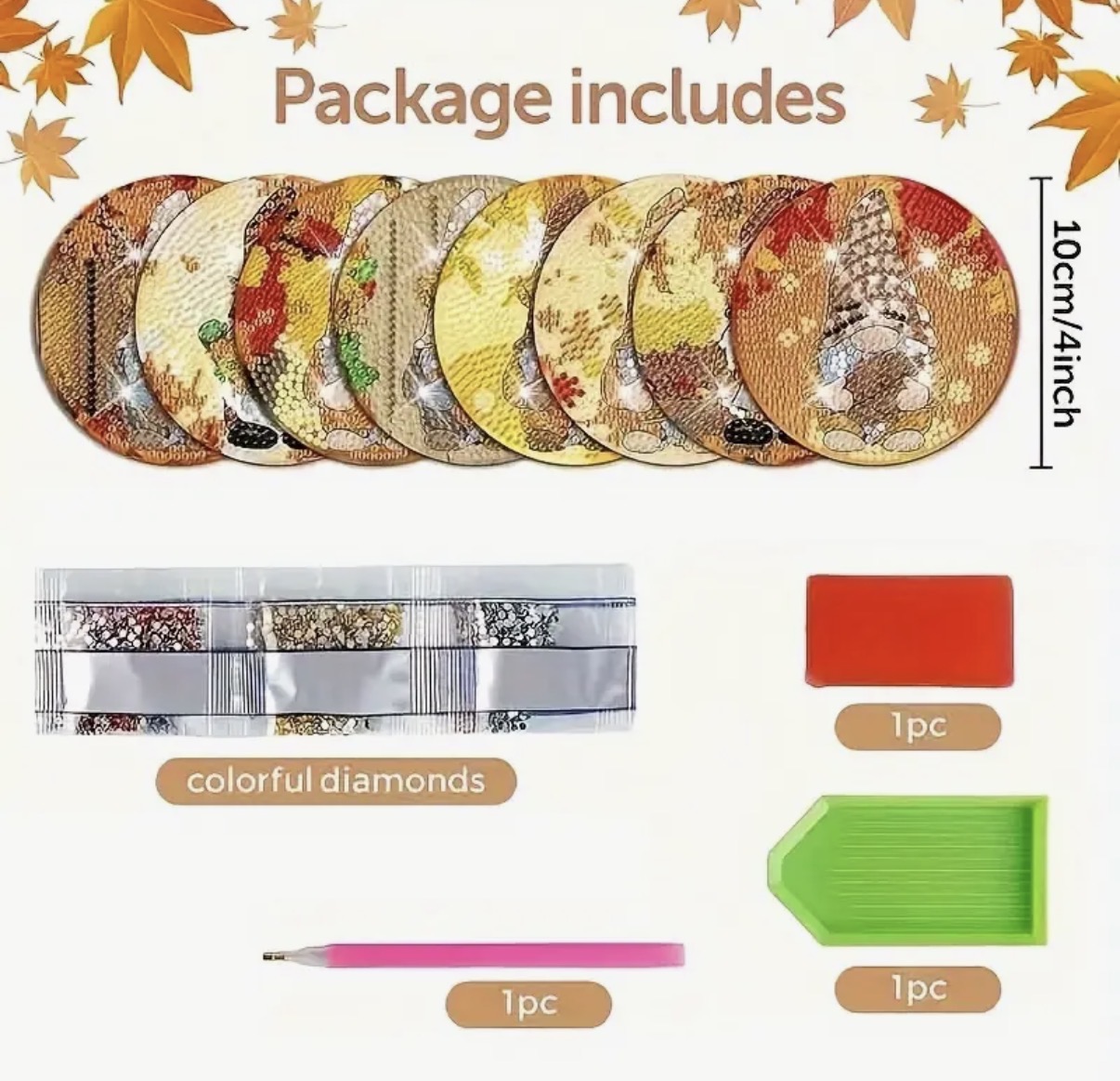 این مجموعه زیرلیوانی الماسی با الهام از حالوهوای پاییزی طراحی شده و شخصیتهای بامزهی کوتولههای پاییزی (گنومها) را در میان برگهای رنگارنگ، کدو تنبل و المانهای گرم فصل پاییز به تصویر میکشد. ترکیب رنگهای نارنجی، زرد، قهوهای و قرمز حس گرما، صمیمیت و آرامش پاییز را بهخوبی منتقل میکند.