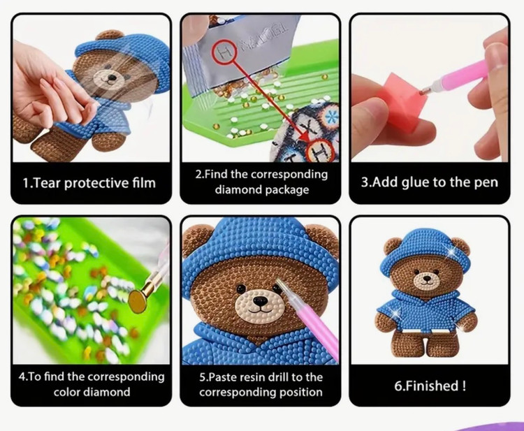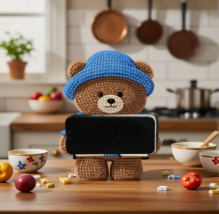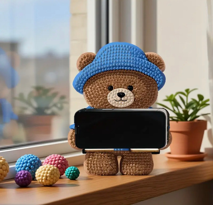این هولدر موبایل الماسی با طرح عروسکی خرس، ترکیبی از کاربردی بودن و هنر دستساز است. طرح بهصورت نقاشی الماسی 2D (تخت) طراحی شده و با چسباندن سنگهای الماسی رنگی، سطح آن کاملاً براق، درخشان و چشمنواز میشود.