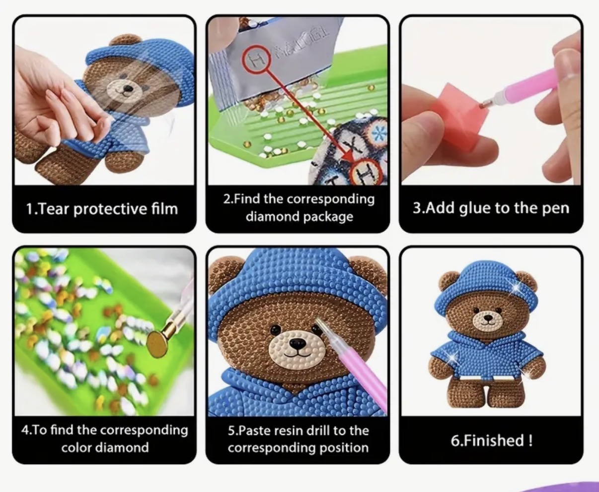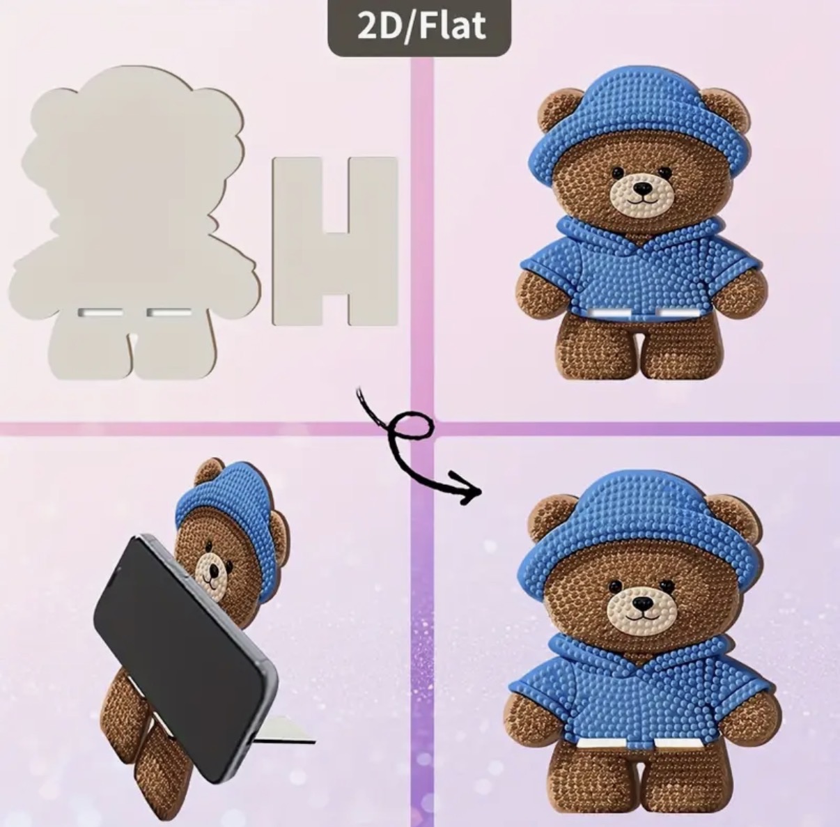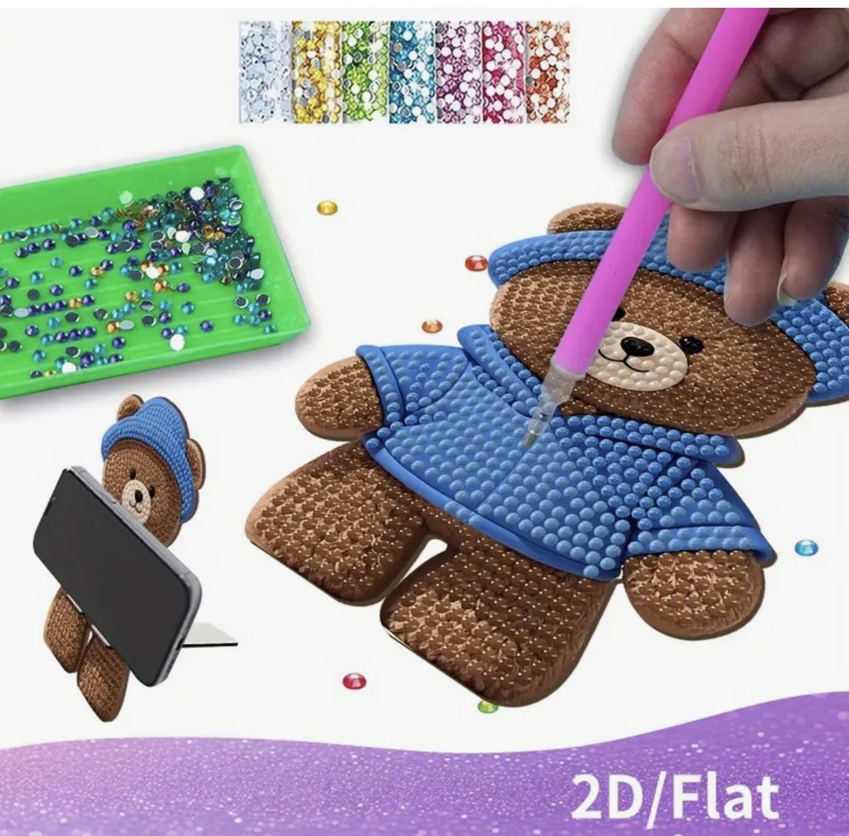 این هولدر موبایل الماسی با طرح عروسکی خرس، ترکیبی از کاربردی بودن و هنر دستساز است. طرح بهصورت نقاشی الماسی 2D (تخت) طراحی شده و با چسباندن سنگهای الماسی رنگی، سطح آن کاملاً براق، درخشان و چشمنواز میشود.