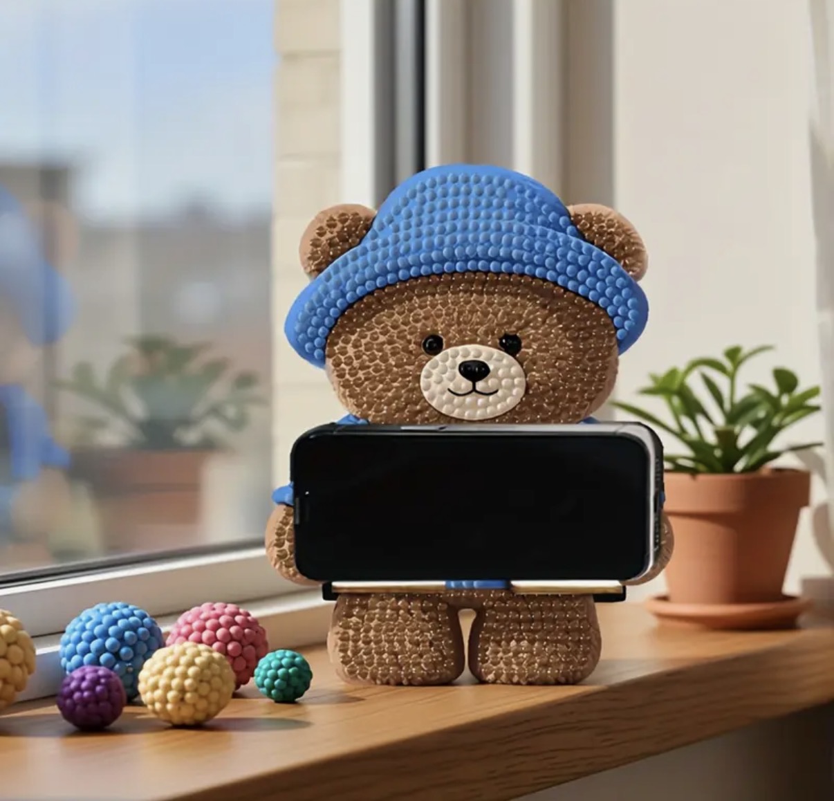 پس از تکمیل، این محصول بهعنوان پایه نگهدارنده موبایل قابل استفاده است و برای قرار دادن گوشی روی میز کار، میز مطالعه یا کنار تخت بسیار مناسب میباشد. ظاهر فانتزی و دوستداشتنی خرس، آن را به گزینهای عالی برای کودکان، نوجوانان و علاقهمندان طرحهای فانتزی تبدیل کرده است.