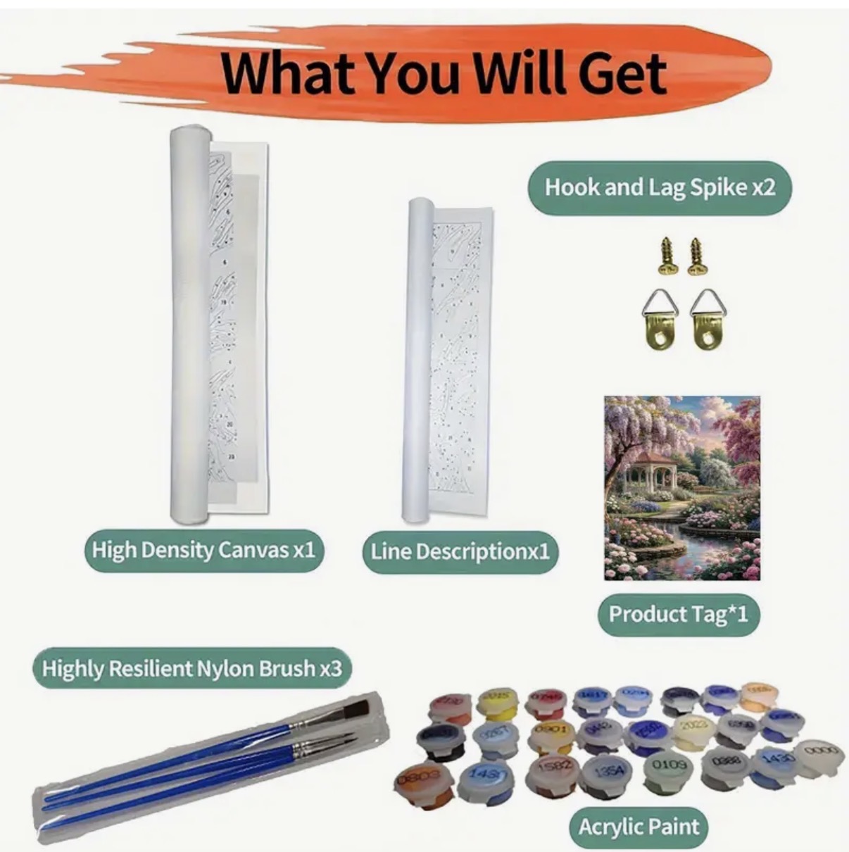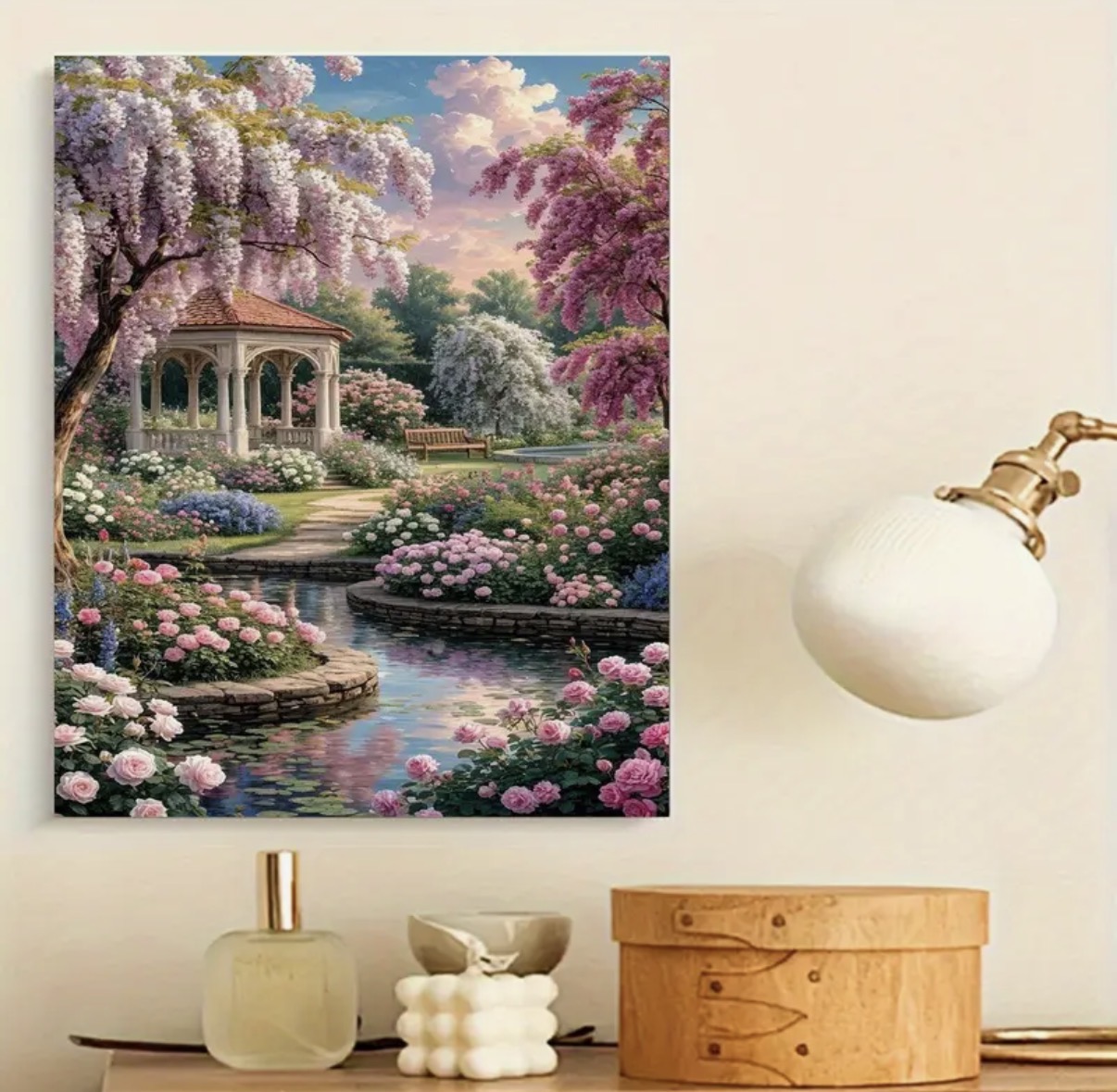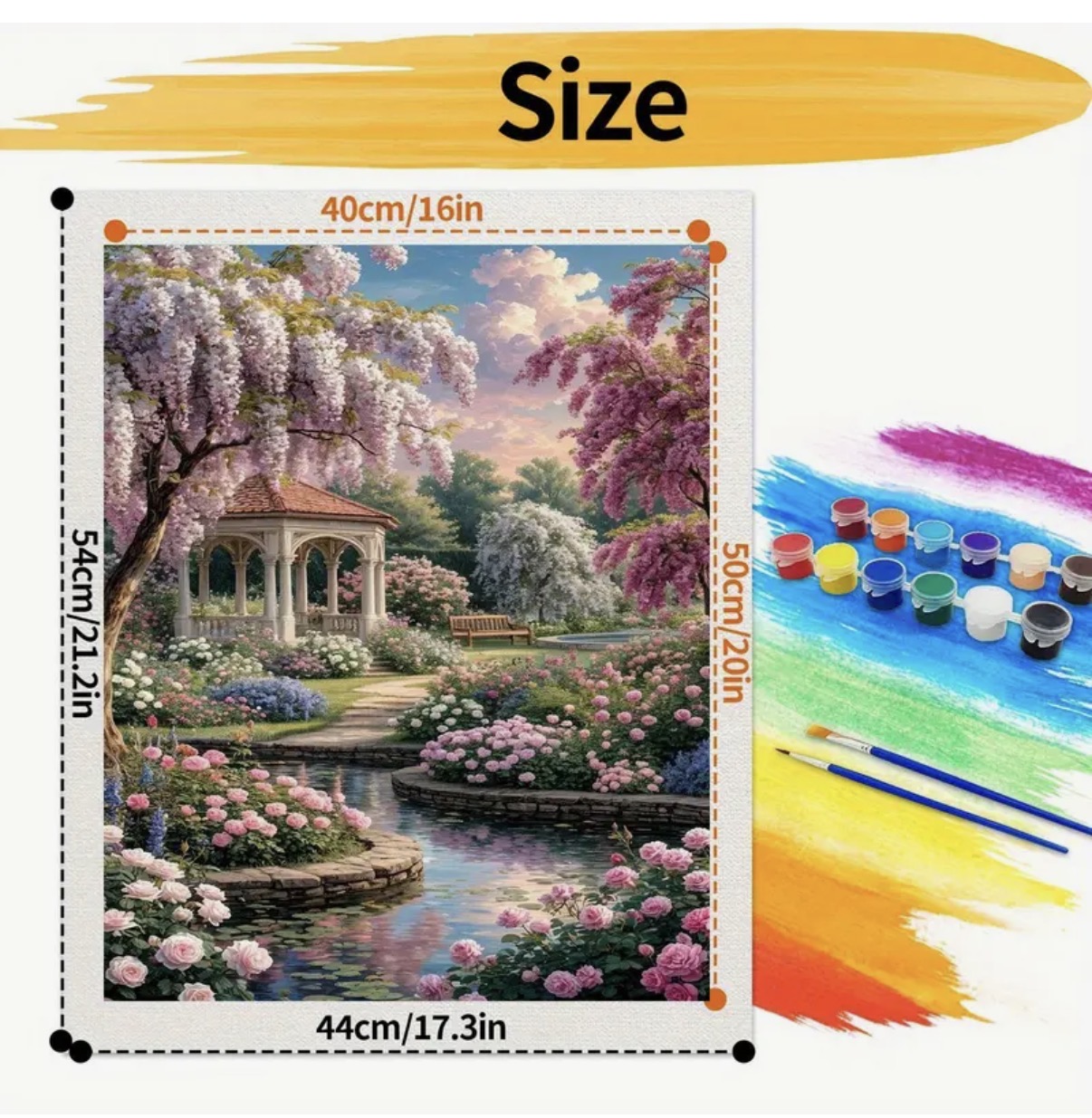 نقاشی با اعداد طرح باغ رویایی آلاچیق سایز 50*40