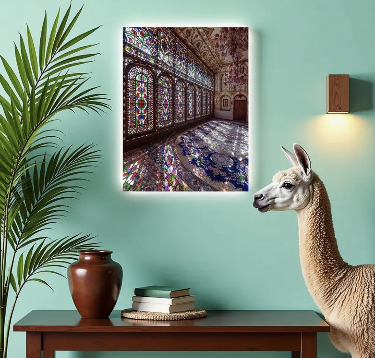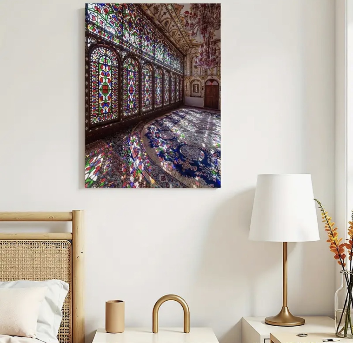 این طرح حالوهوایی آرام، معنوی و هنری دارد و تماشای آن حس سکوت، نور و زیبایی معماری سنتی را القا میکند. جزئیات فراوان و تنوع رنگها، این تصویر را به گزینهای بسیار جذاب برای تبدیل شدن به یک اثر هنری دکوراتیو تبدیل کرده است.