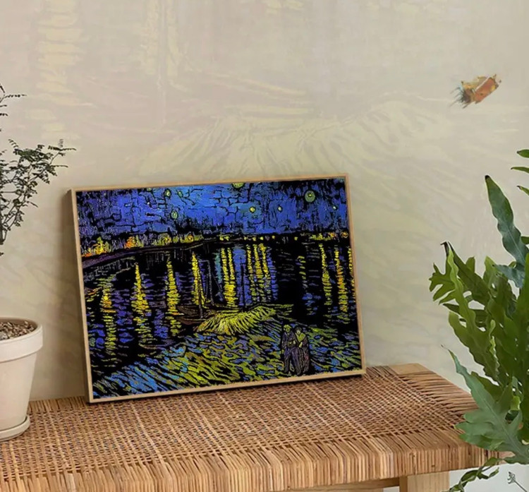 در این مجموعه، صحنههایی مثل شب پرستاره، گلهای آفتابگردان، کافه در شب و منظرهی رودخانه دیده میشود. سبک خطوط موجدار و پرتحرک، کاملاً حس نقاشیهای کلاسیک ونگوگ را منتقل میکند و کنتراست رنگها روی پسزمینهی تیره جلوهای بسیار چشمگیر ایجاد میکند.
