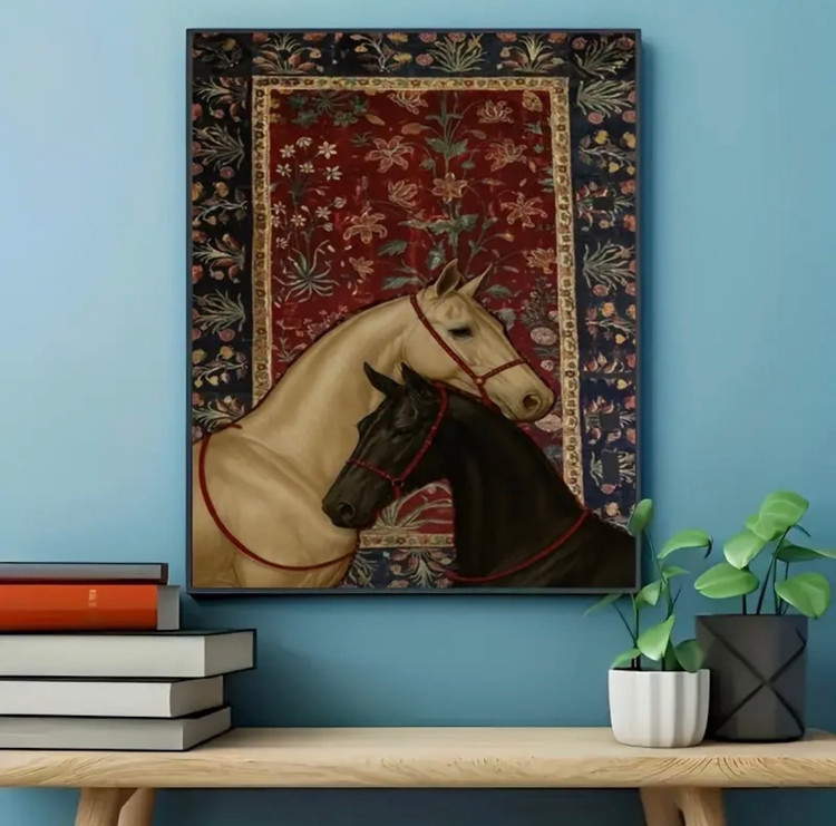 نتیجه نهایی یک تابلو شیک، خاص و چشمگیر است که برای دکوراسیون منزل، فضای کلاسیک یا هدیهای هنری و ماندگار انتخاب فوقالعادهای محسوب میشود 🎨🐎