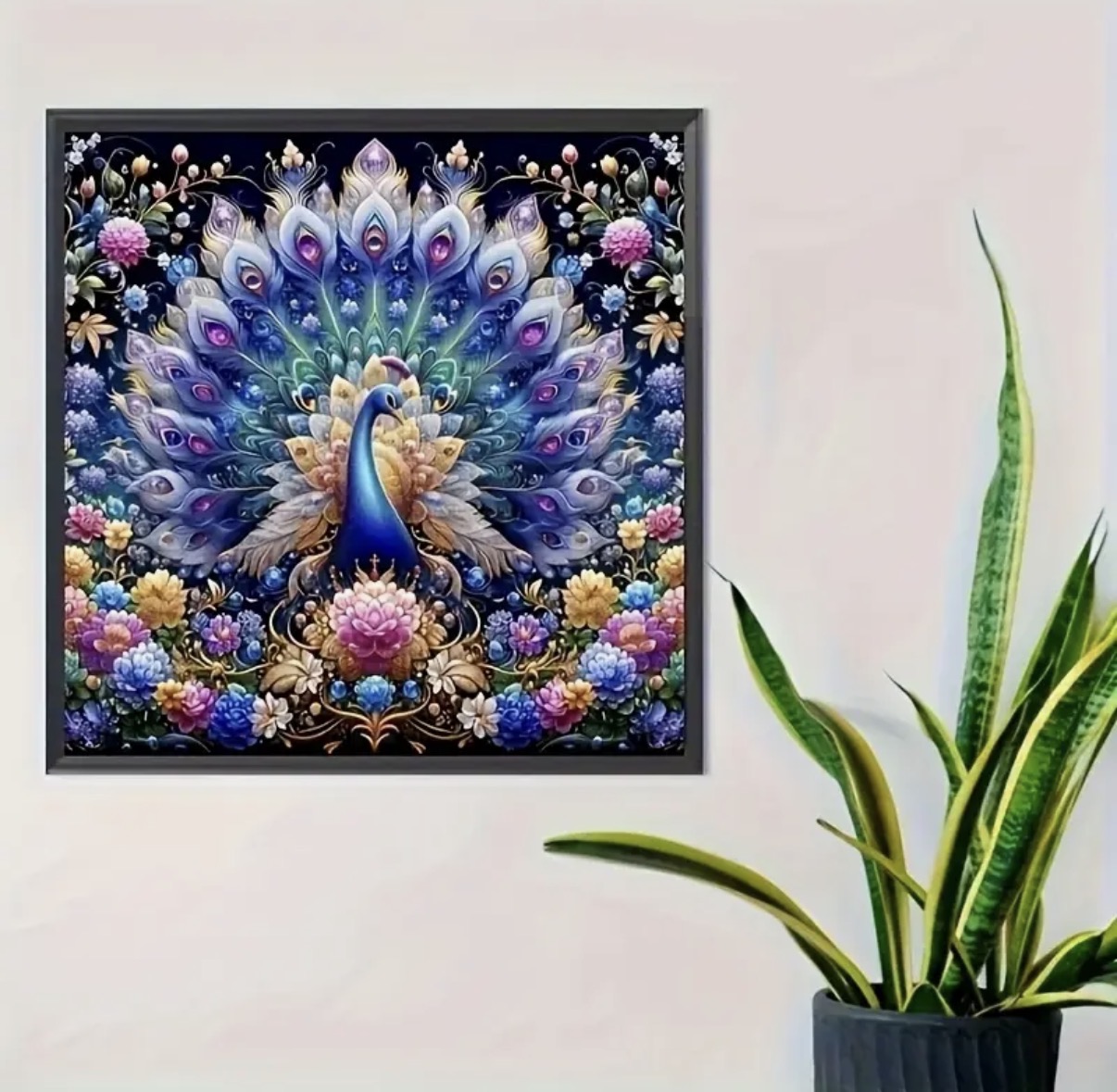 جزئیات فراوان پرهای طاووس و گلهای اطراف، در کنار درخشش نگینهای الماسی، باعث میشود تابلو پس از تکمیل جلوهای بسیار لوکس، درخشان و چشمگیر داشته باشد و به نقطه کانونی هر فضا تبدیل شود.