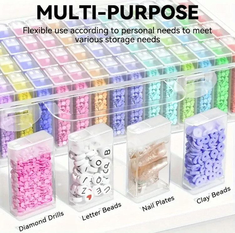 این جعبه باعث میشود همهی الماسها و مهرههای ریز شما همیشه مرتب و در دسترس باشند، بدون اینکه نگران گمشدن یا قاطیشدن آنها باشید. 💎✨