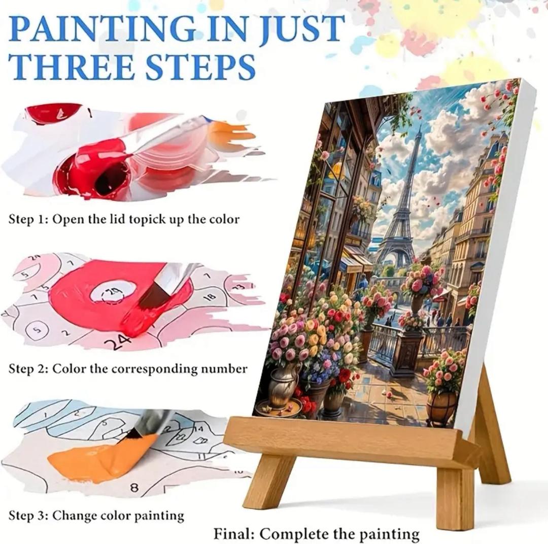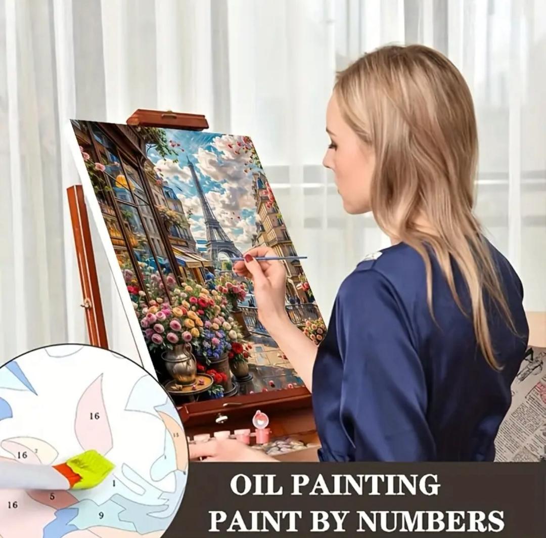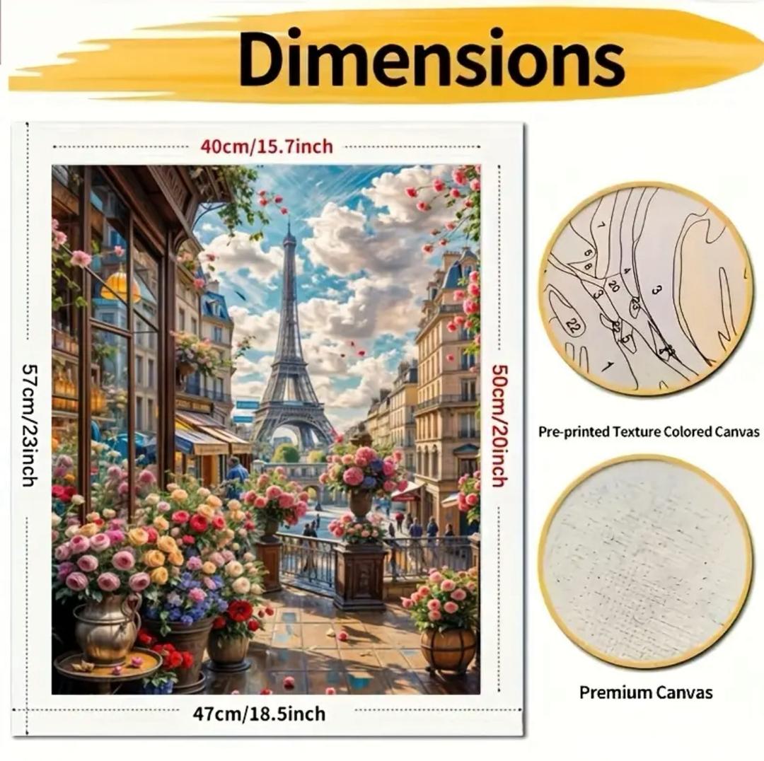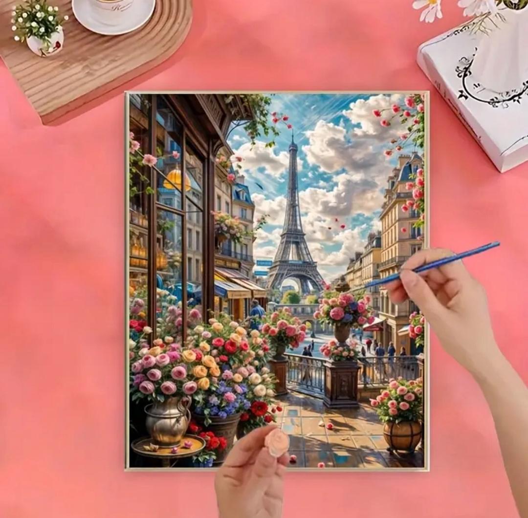 با این کیت نقاشی با اعداد، خودتون هنرمند تابلوهای زیبا بشید! تصویری شگفتانگیز از خیابانهای پرگل پاریس با نمای برج ایفل که با رنگهای شمارهگذاریشده کامل میشه و در نهایت یک اثر هنری دستساز و ماندگار خواهید داشت.